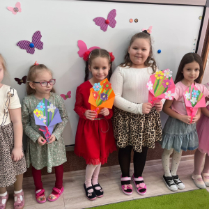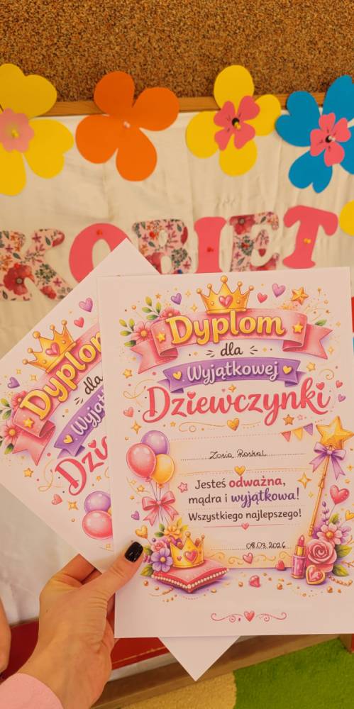 6 marca w naszym przedszkolu obchodziliśmy Dzień Kobiet. Z tej okazji chłopcy przygotowali dla dziewczynek piękne laurki oraz złożyli im serdeczne życzenia. Dzieci wspólnie spędziły ten dzień na zabawie i miłych chwilach w swoich grupach. W trakcie świętowania odbył się również słodki poczęstunek. Wszystkim dziewczynkom życzymy dużo uśmiechu, radości, wspaniałych przygód oraz spełnienia dziecięcych marzeń.