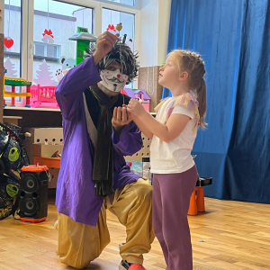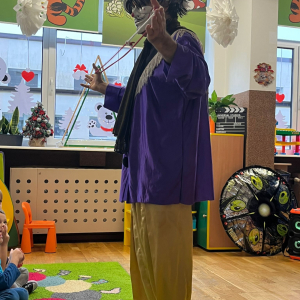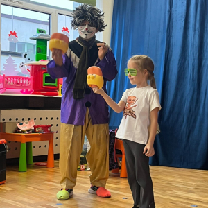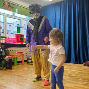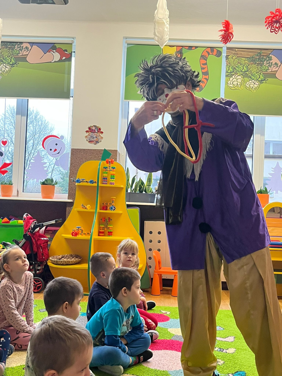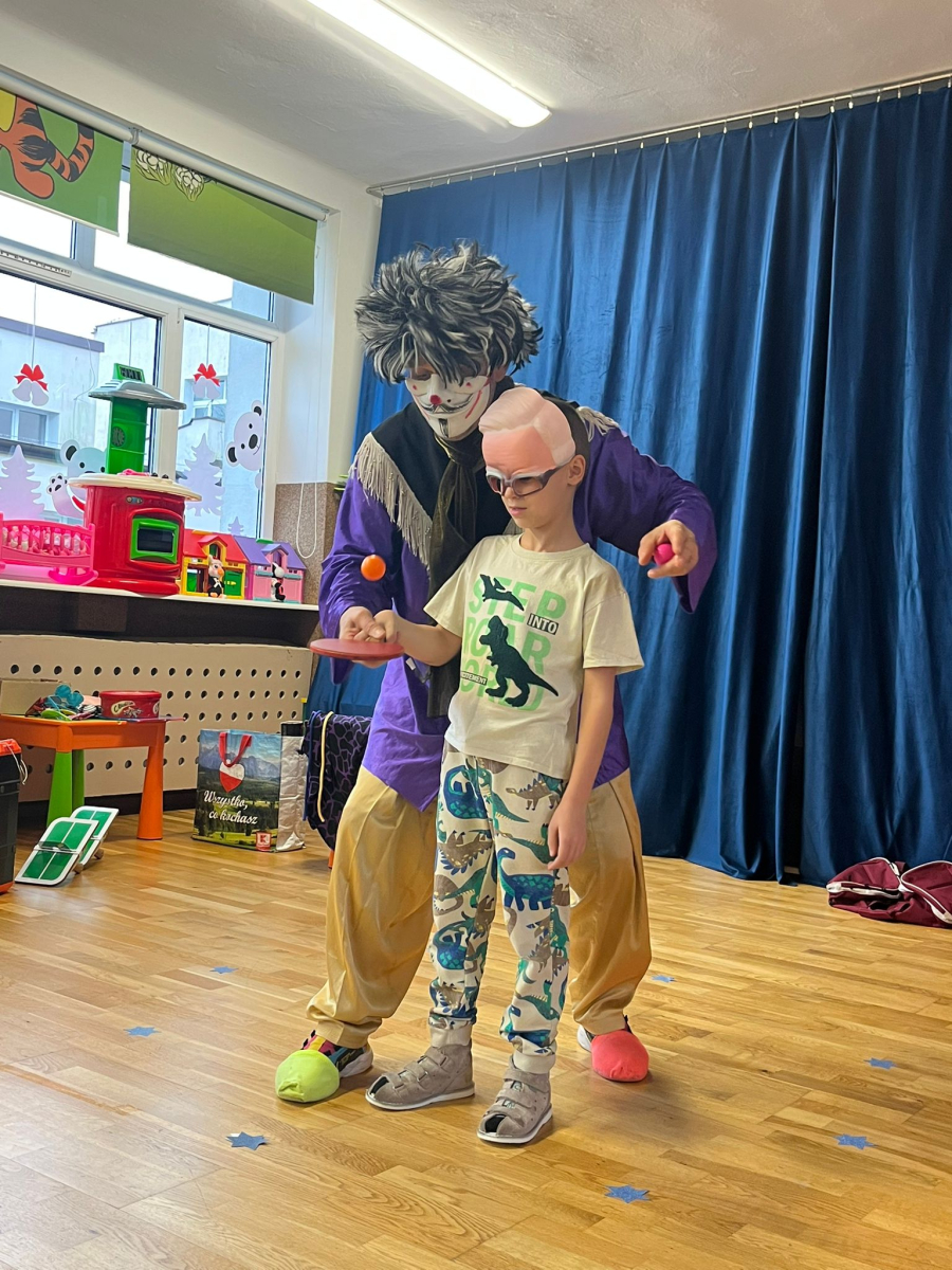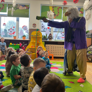 11 grudnia nasze przedszkole odwiedził zaprzyjaźniony Klaun Walduś z programem „Mydło w dłoń, zarazki goń!”. Spotkanie było nie tylko zabawne, ale też pouczające – dzieci dowiedziały się, jak ważne jest mycie rąk i dbanie o higienę. Walduś oczarował wszystkich swoimi sztuczkami, angażując przy tym przedszkolaki. Wszyscy bawili się wyśmienicie!