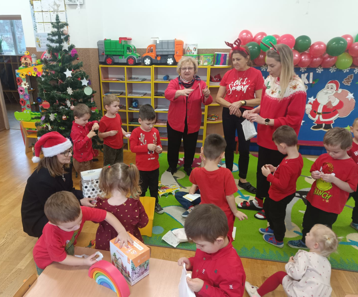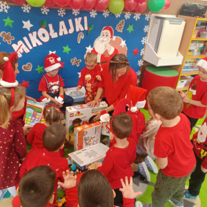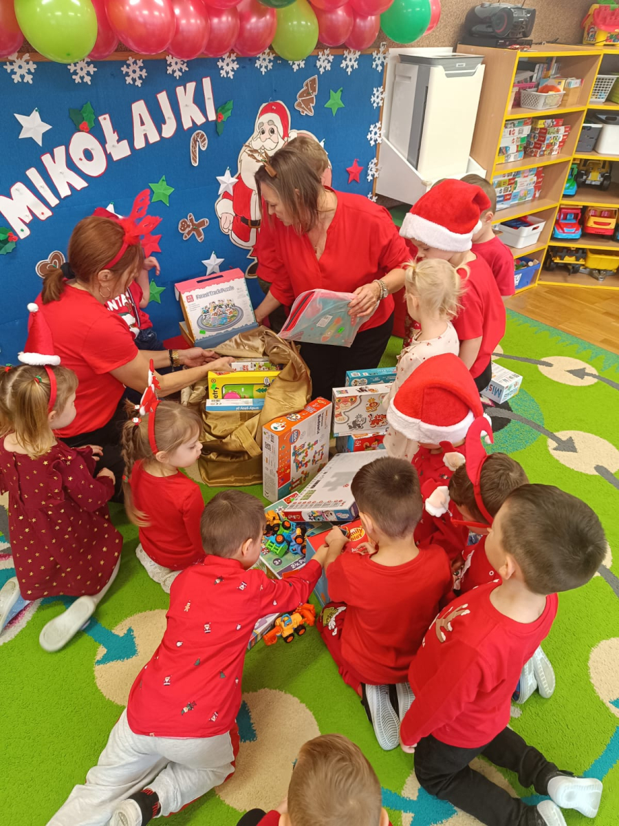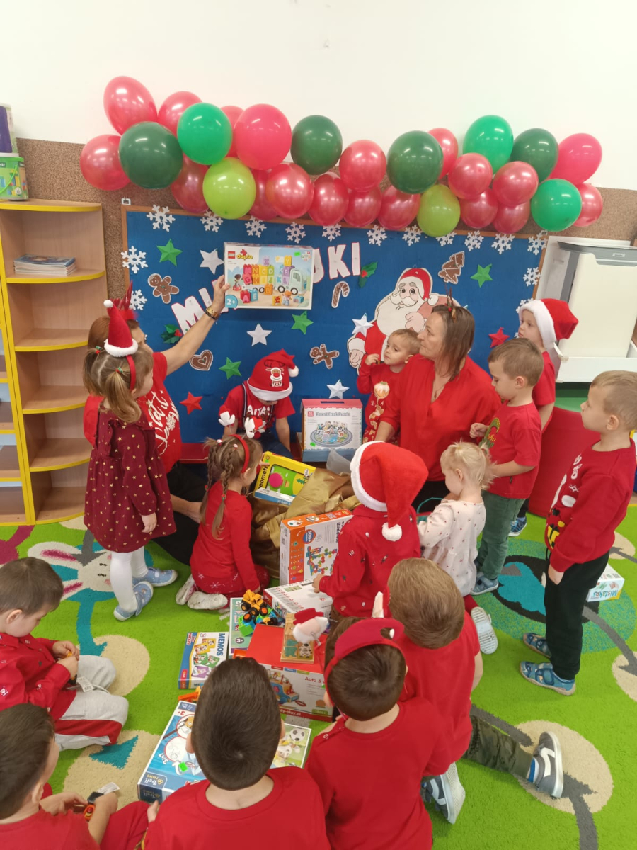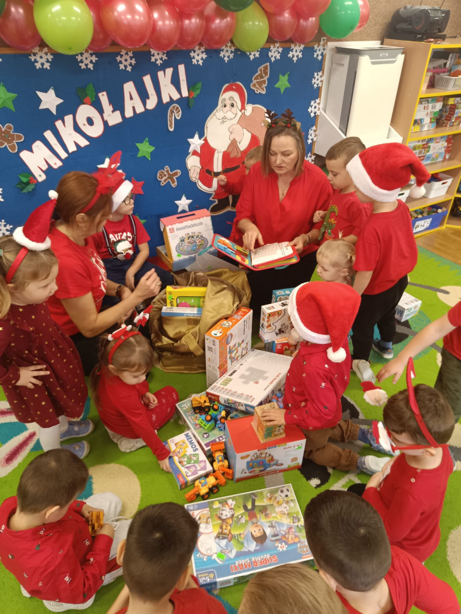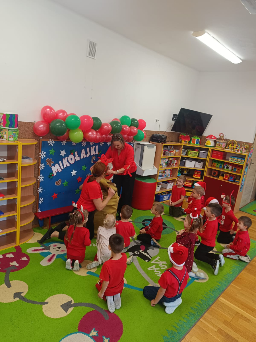 5 grudnia w naszym przedszkolu pojawił się długo wyczekiwany gość – Święty Mikołaj! Przybył z wielkim workiem pełnym niespodzianek, a dzieci powitały go radosnymi piosenkami i wierszykami. Odbył się również słodki poczęstunek, który umilił wszystkim to wyjątkowe, magiczne przedpołudnie. Jak co roku, każde z przedszkolnych oddziałów otrzymało nowe zabawki do sal, zakupione dzięki środkom pochodzącym z komitetu rodzicielskiego oraz z budżetu przedszkola. Serdecznie dziękujemy Rodzicom za sponsorat, Pani Sekretarz Gminy Horodło Renacie Czekaj – za słodkości oraz klocki LEGO dla każdej z grup, a Panu Mateuszowi Jaroniowi – za wsparcie finansowe. Dziękujemy również Świętemu Mikołajowi za odwiedziny i stworzenie wspaniałej, radosnej atmosfery. Mamy nadzieję, że spotkamy się ponownie za rok!