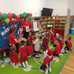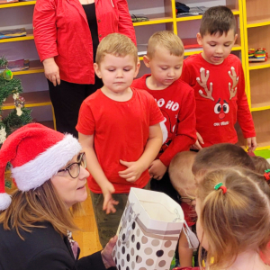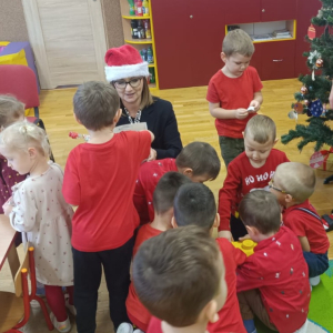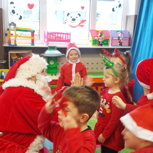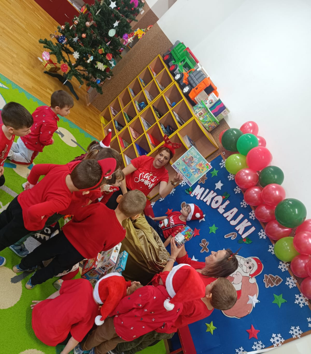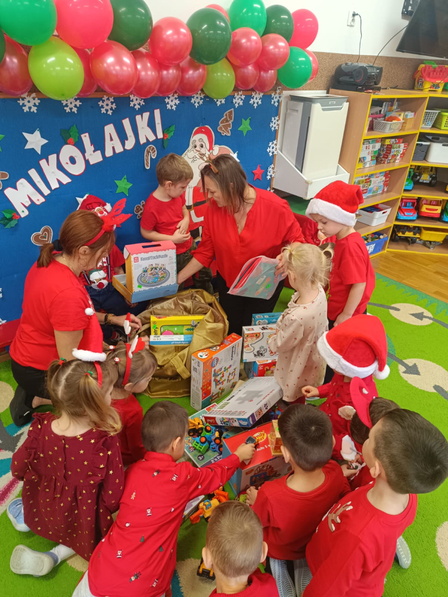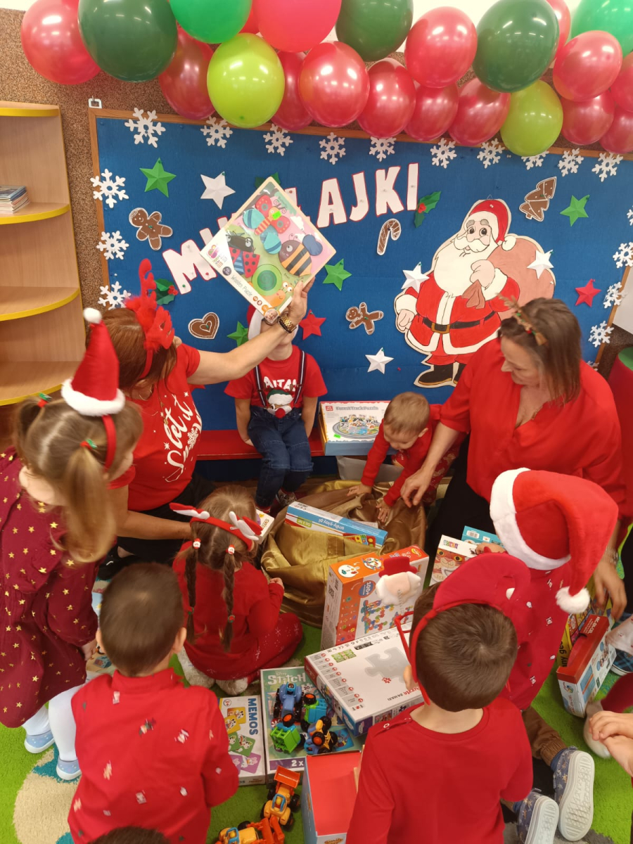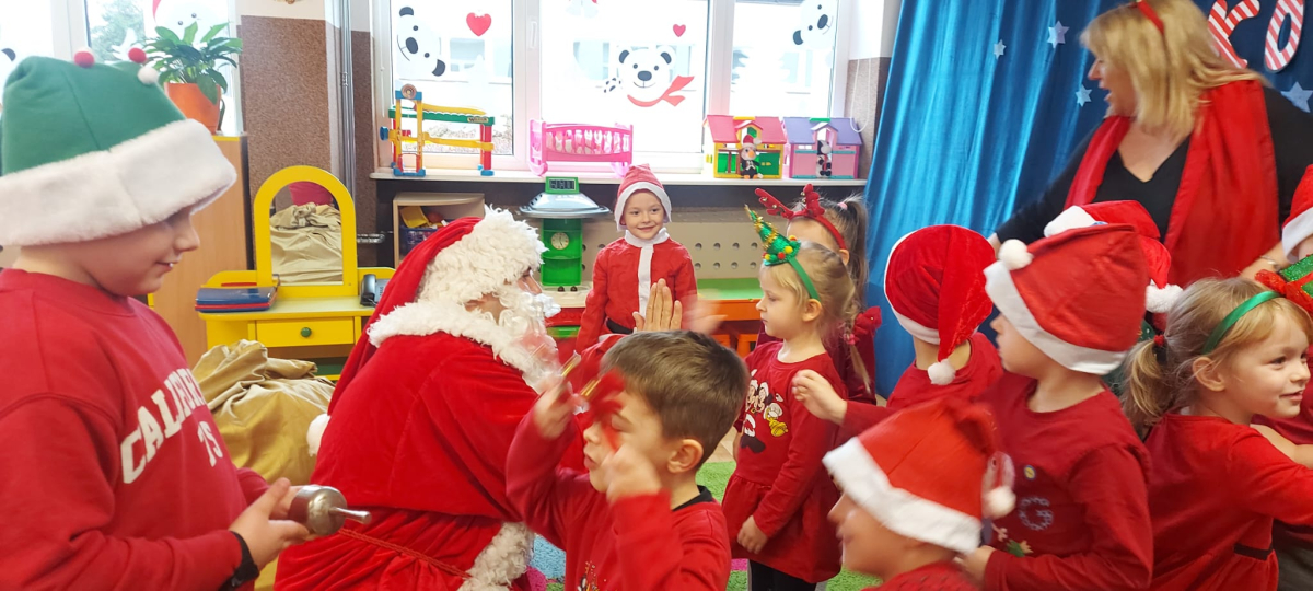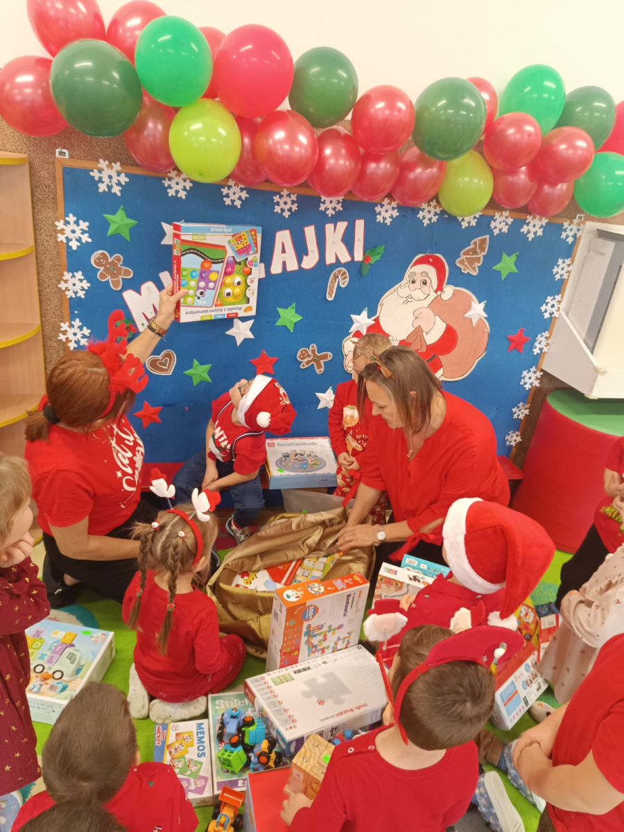 5 grudnia w naszym przedszkolu pojawił się długo wyczekiwany gość – Święty Mikołaj! Przybył z wielkim workiem pełnym niespodzianek, a dzieci powitały go radosnymi piosenkami i wierszykami. Odbył się również słodki poczęstunek, który umilił wszystkim to wyjątkowe, magiczne przedpołudnie. Jak co roku, każde z przedszkolnych oddziałów otrzymało nowe zabawki do sal, zakupione dzięki środkom pochodzącym z komitetu rodzicielskiego oraz z budżetu przedszkola. Serdecznie dziękujemy Rodzicom za sponsorat, Pani Sekretarz Gminy Horodło Renacie Czekaj – za słodkości oraz klocki LEGO dla każdej z grup, a Panu Mateuszowi Jaroniowi – za wsparcie finansowe. Dziękujemy również Świętemu Mikołajowi za odwiedziny i stworzenie wspaniałej, radosnej atmosfery. Mamy nadzieję, że spotkamy się ponownie za rok!