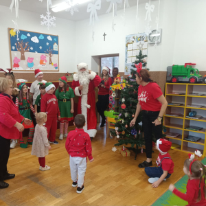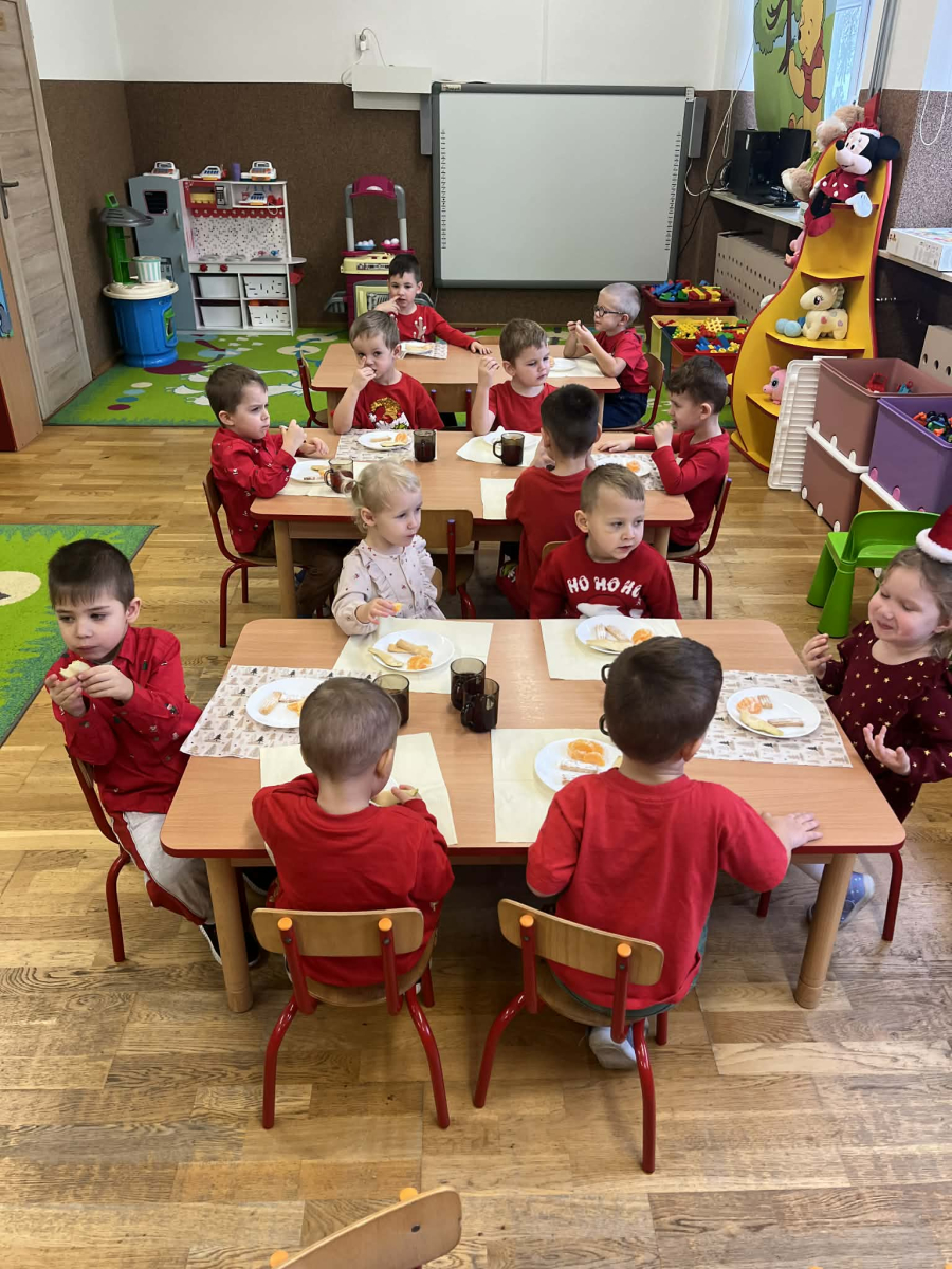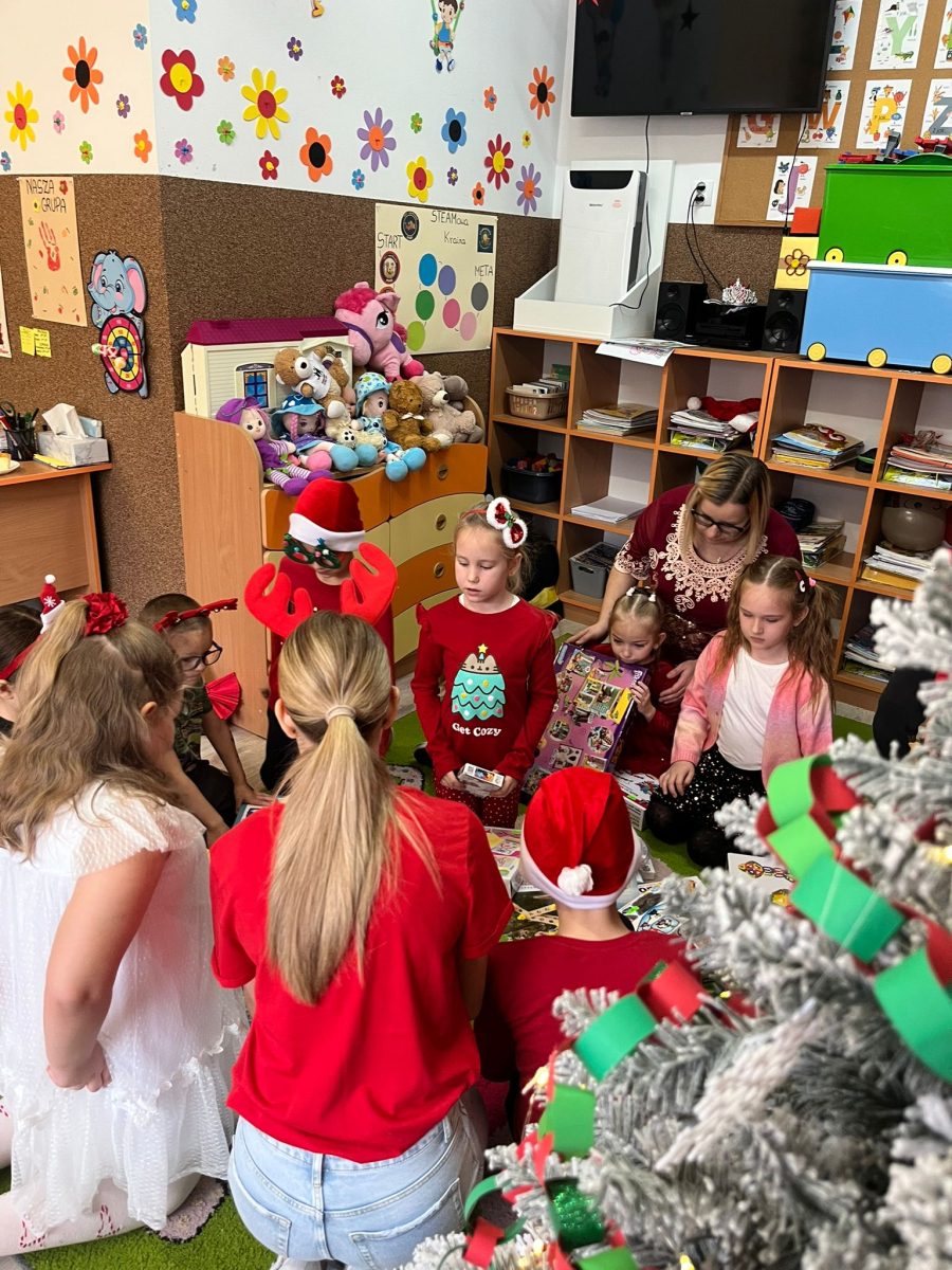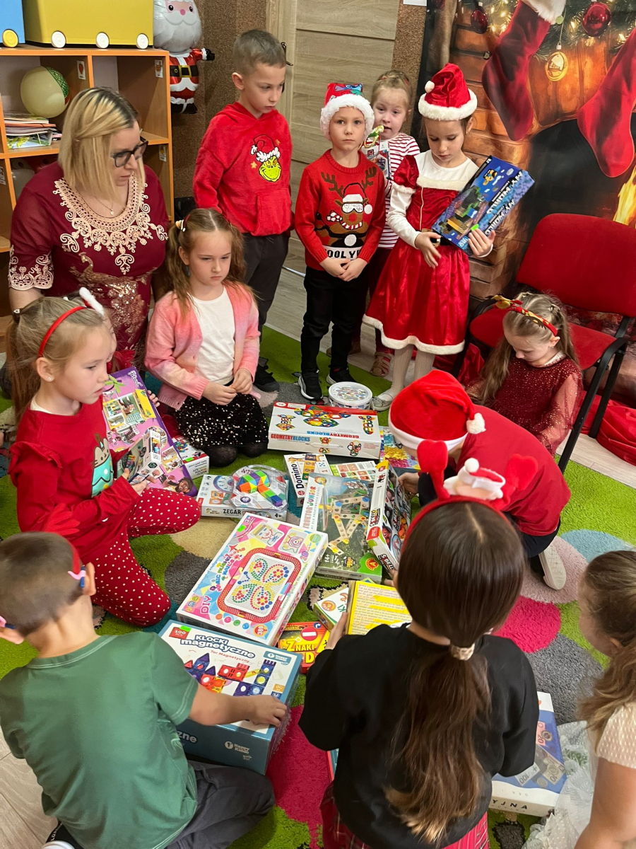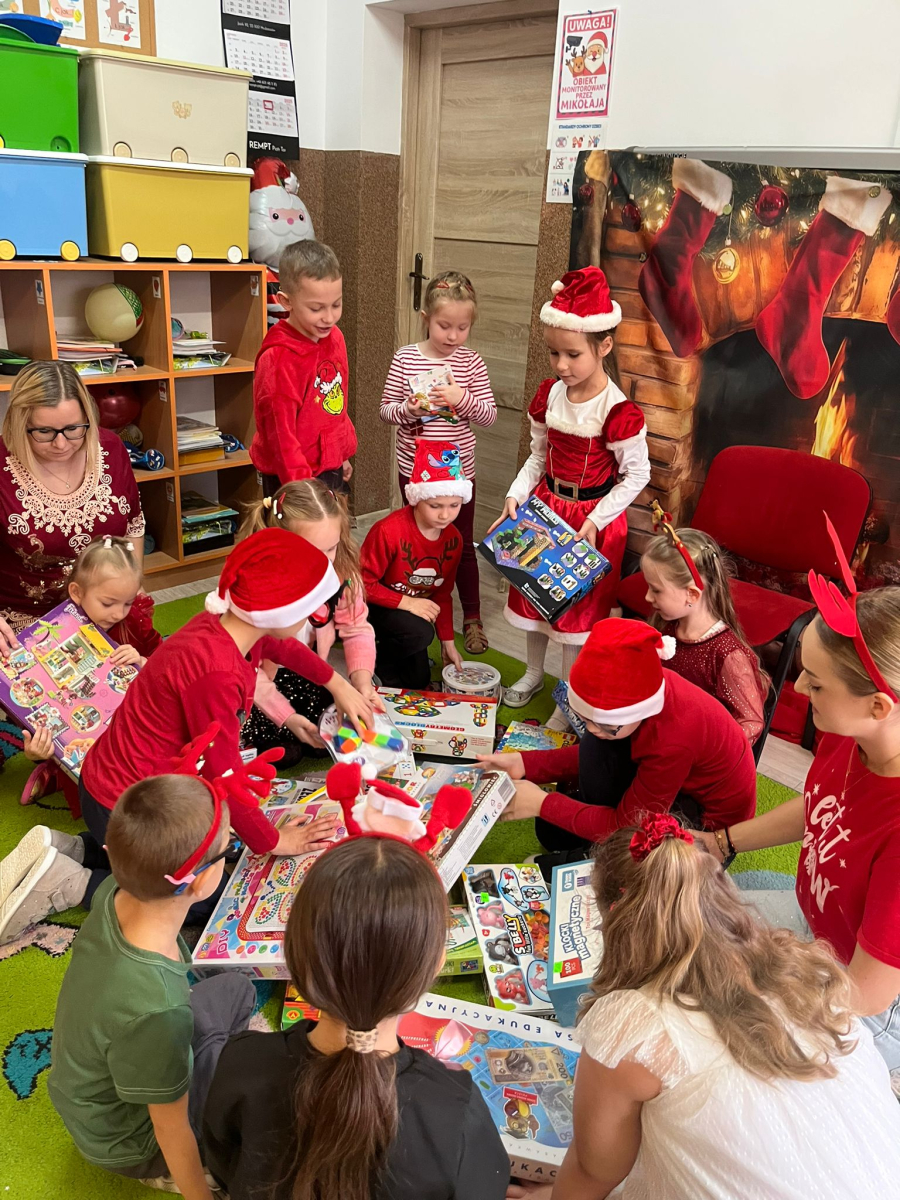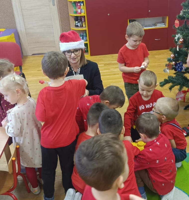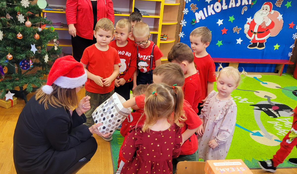 5 grudnia w naszym przedszkolu pojawił się długo wyczekiwany gość – Święty Mikołaj! Przybył z wielkim workiem pełnym niespodzianek, a dzieci powitały go radosnymi piosenkami i wierszykami. Odbył się również słodki poczęstunek, który umilił wszystkim to wyjątkowe, magiczne przedpołudnie. Jak co roku, każde z przedszkolnych oddziałów otrzymało nowe zabawki do sal, zakupione dzięki środkom pochodzącym z komitetu rodzicielskiego oraz z budżetu przedszkola. Serdecznie dziękujemy Rodzicom za sponsorat, Pani Sekretarz Gminy Horodło Renacie Czekaj – za słodkości oraz klocki LEGO dla każdej z grup, a Panu Mateuszowi Jaroniowi – za wsparcie finansowe. Dziękujemy również Świętemu Mikołajowi za odwiedziny i stworzenie wspaniałej, radosnej atmosfery. Mamy nadzieję, że spotkamy się ponownie za rok!