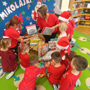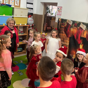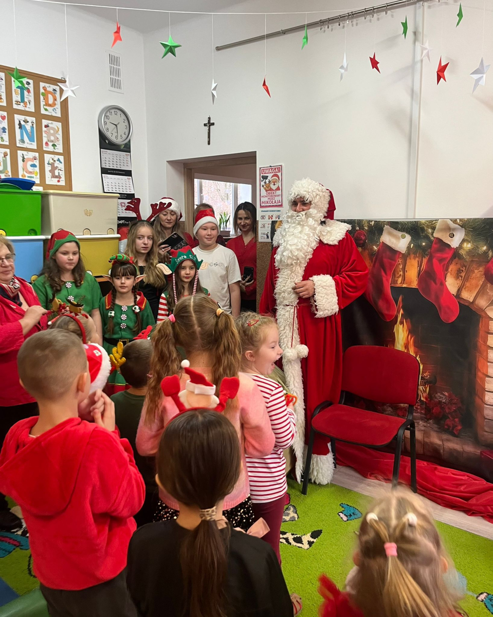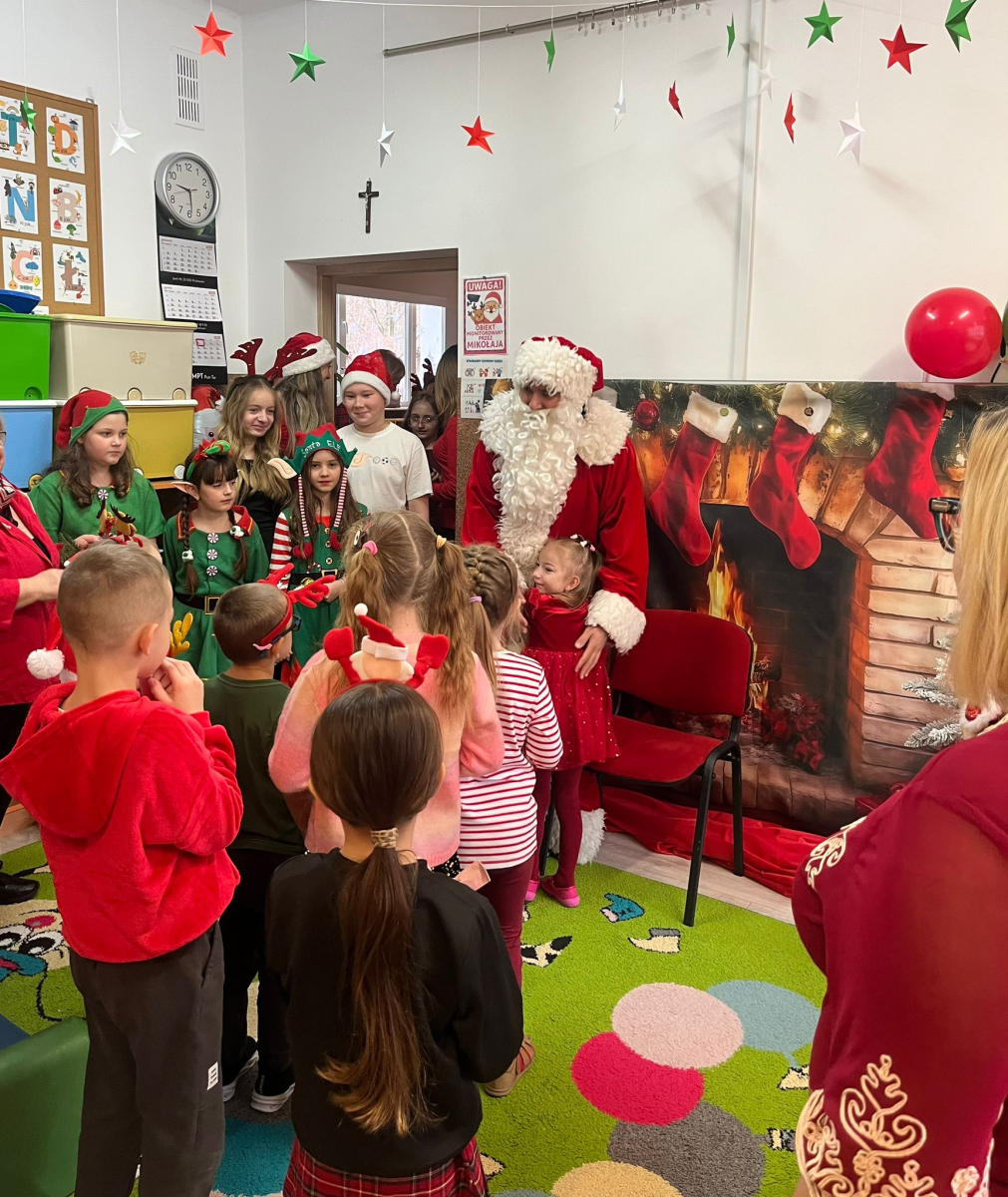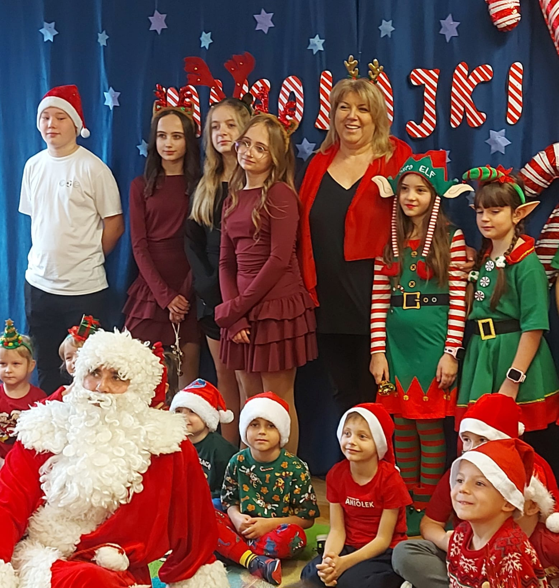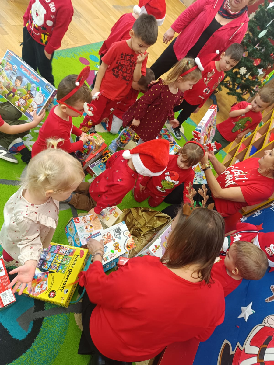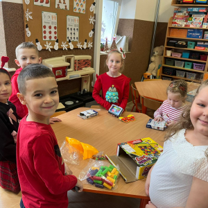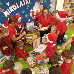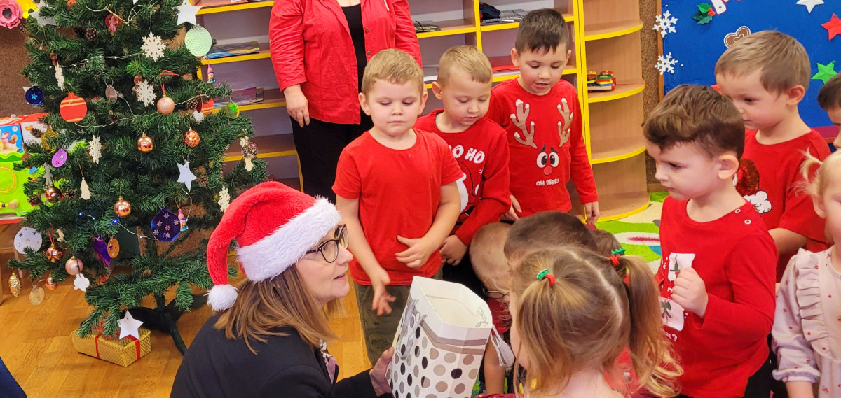 5 grudnia w naszym przedszkolu pojawił się długo wyczekiwany gość – Święty Mikołaj! Przybył z wielkim workiem pełnym niespodzianek, a dzieci powitały go radosnymi piosenkami i wierszykami. Odbył się również słodki poczęstunek, który umilił wszystkim to wyjątkowe, magiczne przedpołudnie. Jak co roku, każde z przedszkolnych oddziałów otrzymało nowe zabawki do sal, zakupione dzięki środkom pochodzącym z komitetu rodzicielskiego oraz z budżetu przedszkola. Serdecznie dziękujemy Rodzicom za sponsorat, Pani Sekretarz Gminy Horodło Renacie Czekaj – za słodkości oraz klocki LEGO dla każdej z grup, a Panu Mateuszowi Jaroniowi – za wsparcie finansowe. Dziękujemy również Świętemu Mikołajowi za odwiedziny i stworzenie wspaniałej, radosnej atmosfery. Mamy nadzieję, że spotkamy się ponownie za rok!