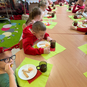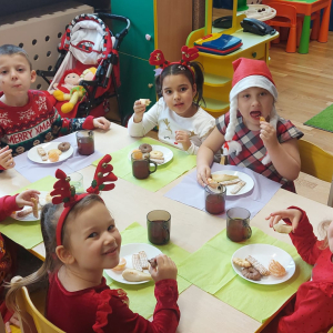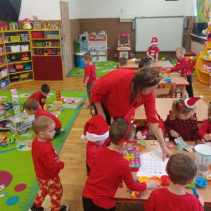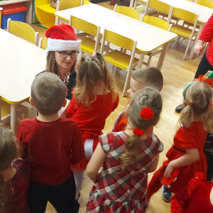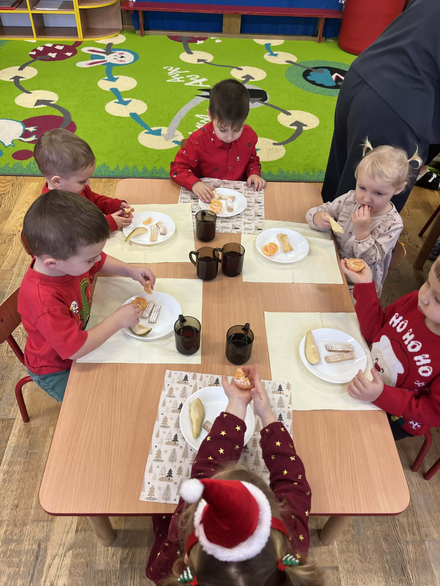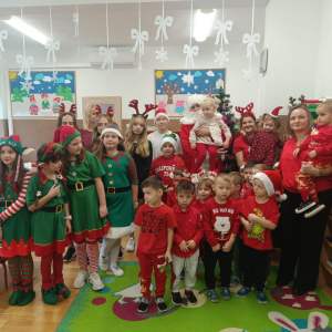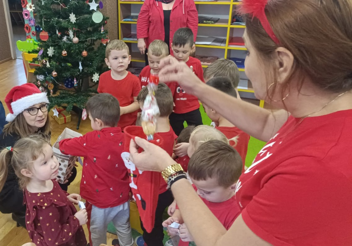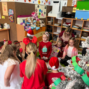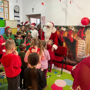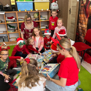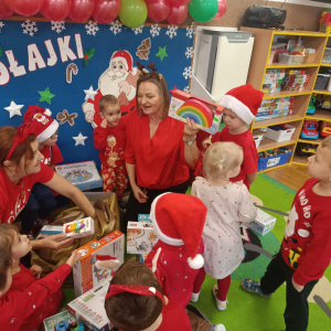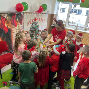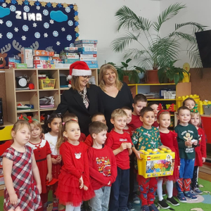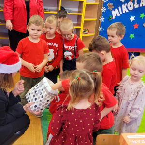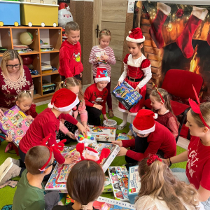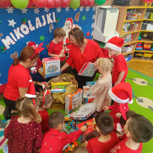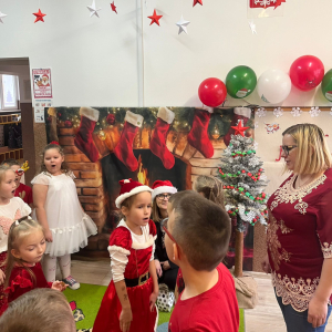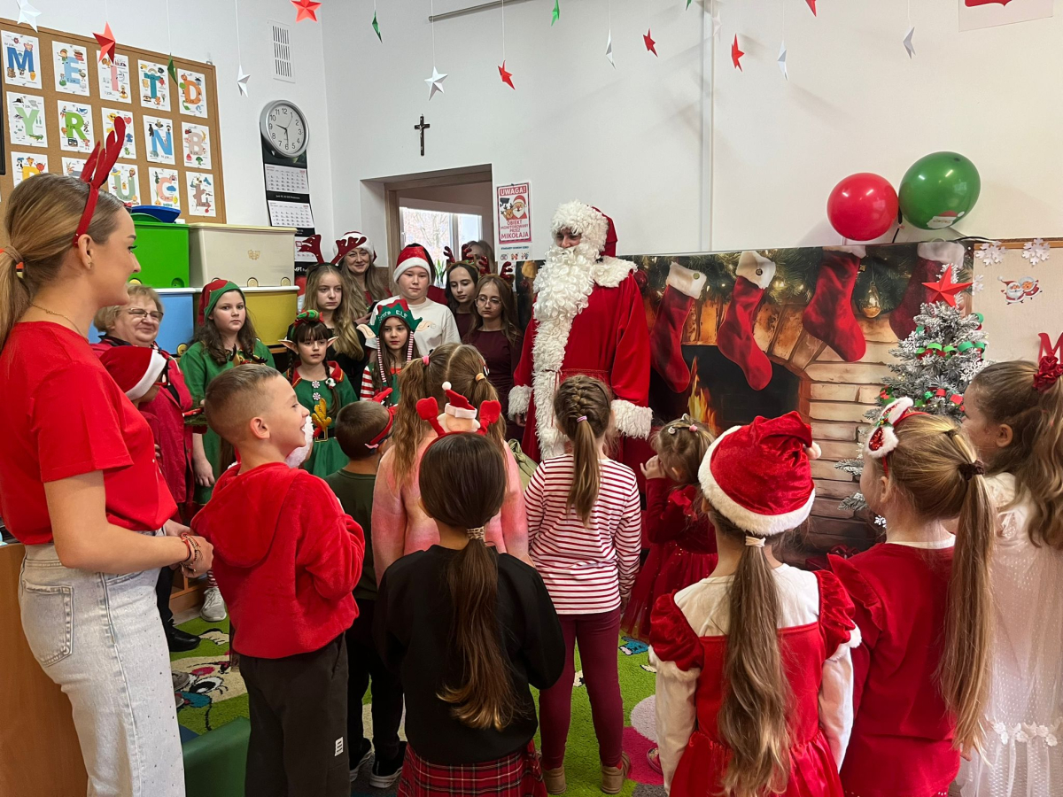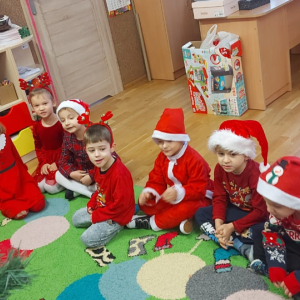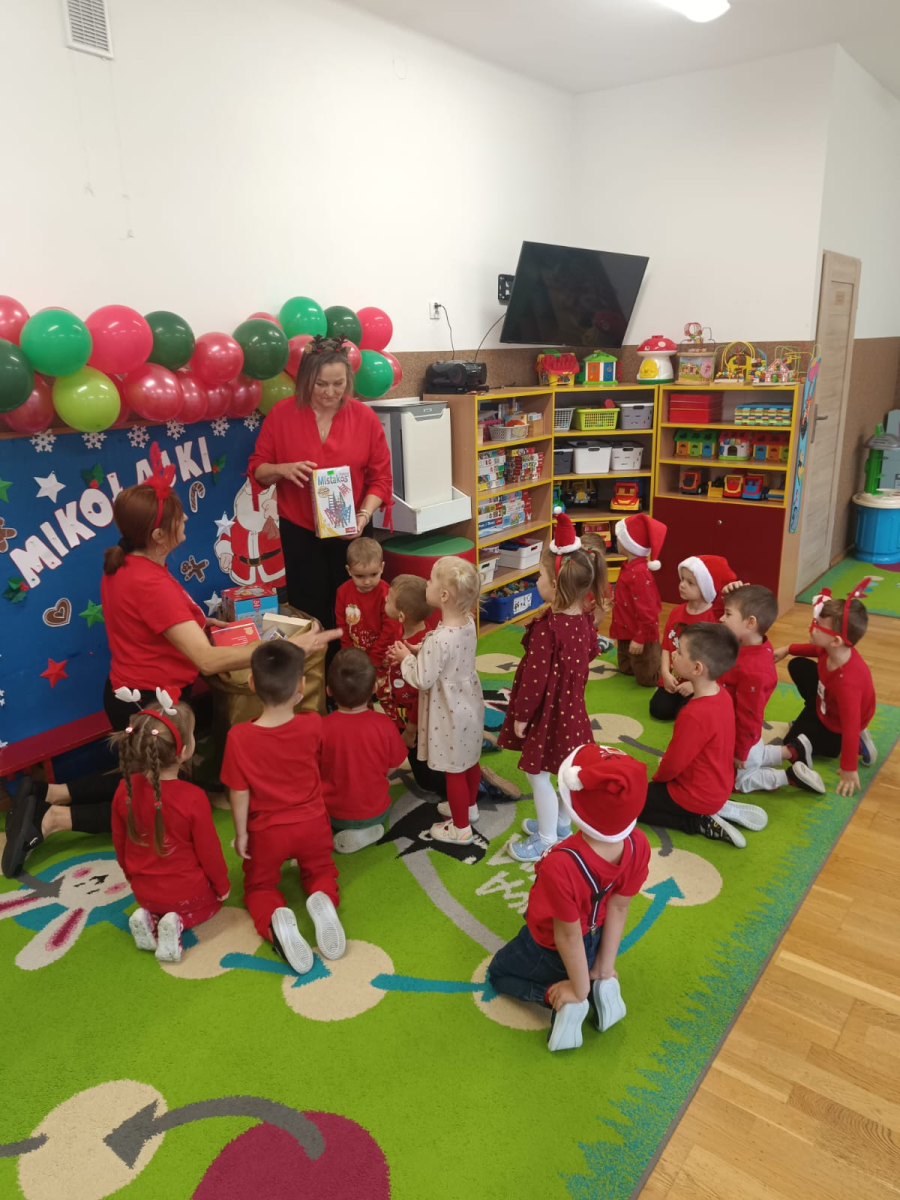 5 grudnia w naszym przedszkolu pojawił się długo wyczekiwany gość – Święty Mikołaj! Przybył z wielkim workiem pełnym niespodzianek, a dzieci powitały go radosnymi piosenkami i wierszykami. Odbył się również słodki poczęstunek, który umilił wszystkim to wyjątkowe, magiczne przedpołudnie. Jak co roku, każde z przedszkolnych oddziałów otrzymało nowe zabawki do sal, zakupione dzięki środkom pochodzącym z komitetu rodzicielskiego oraz z budżetu przedszkola. Serdecznie dziękujemy Rodzicom za sponsorat, Pani Sekretarz Gminy Horodło Renacie Czekaj – za słodkości oraz klocki LEGO dla każdej z grup, a Panu Mateuszowi Jaroniowi – za wsparcie finansowe. Dziękujemy również Świętemu Mikołajowi za odwiedziny i stworzenie wspaniałej, radosnej atmosfery. Mamy nadzieję, że spotkamy się ponownie za rok!