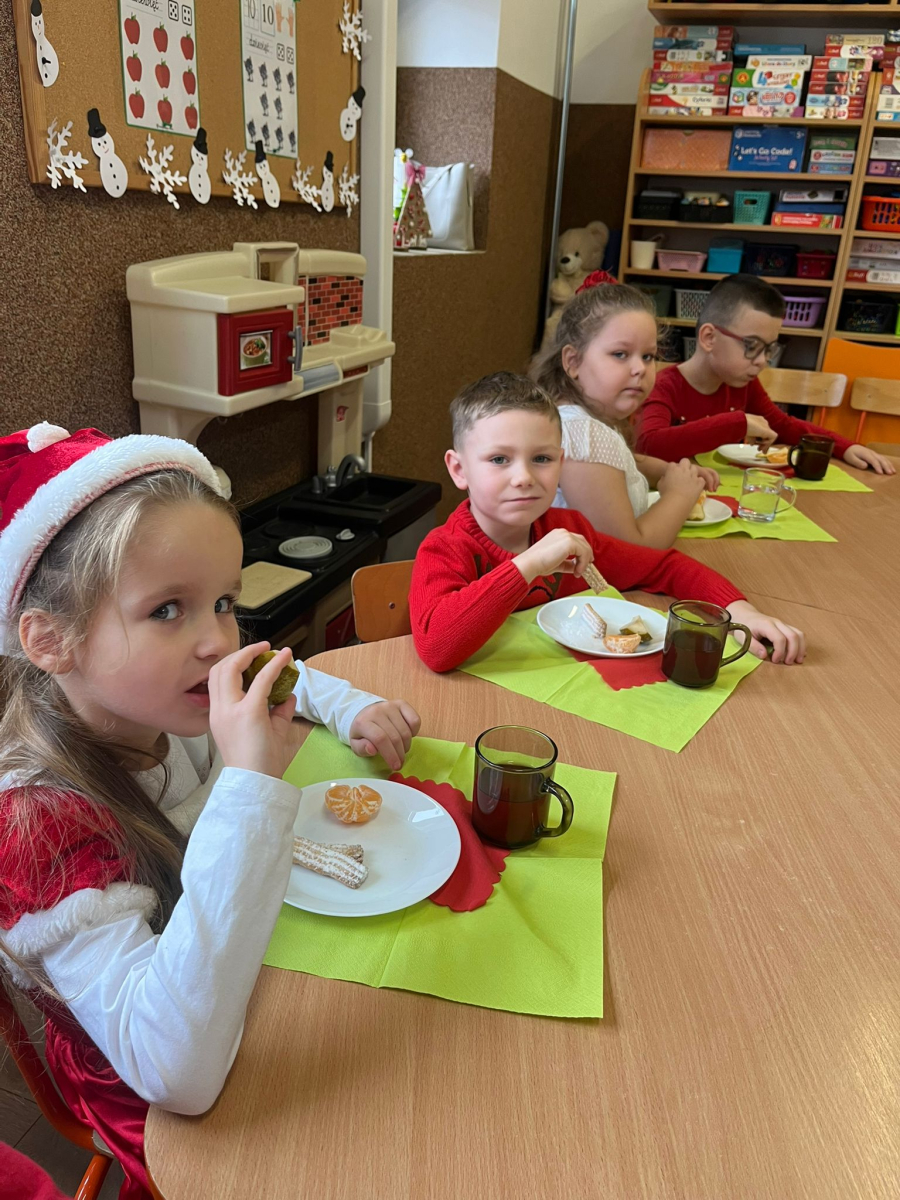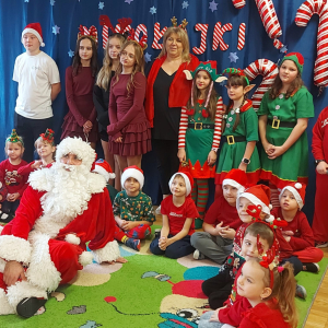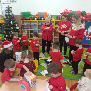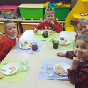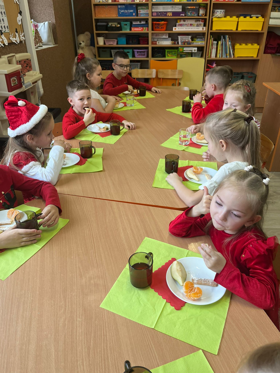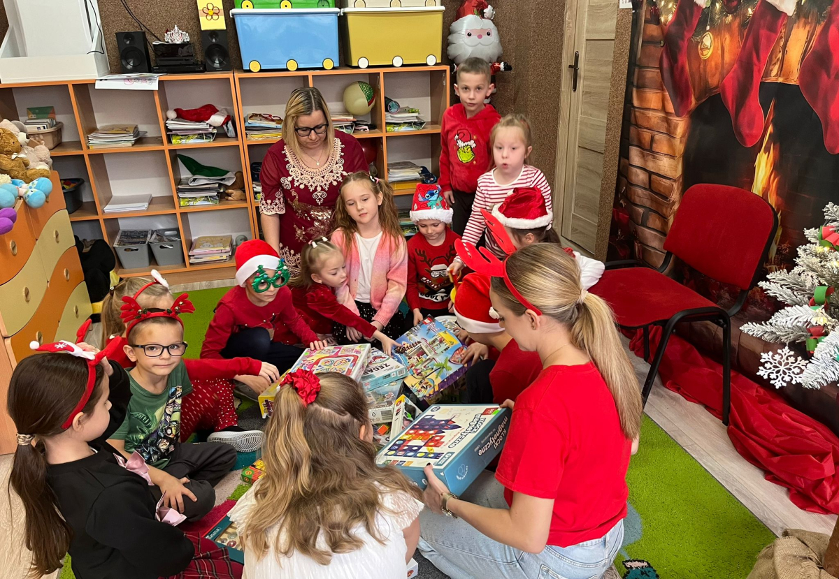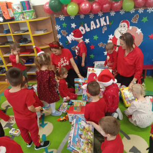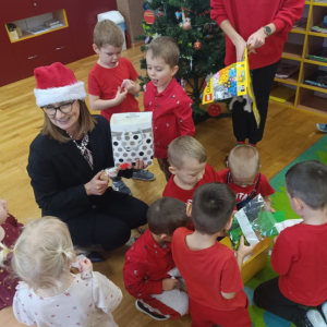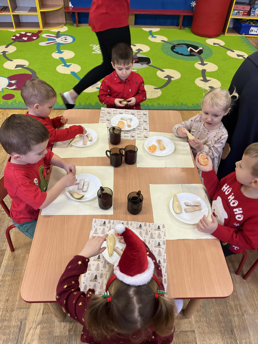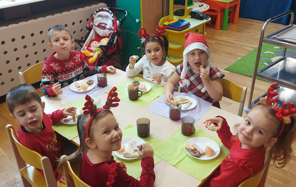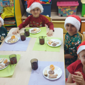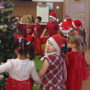 5 grudnia w naszym przedszkolu pojawił się długo wyczekiwany gość – Święty Mikołaj! Przybył z wielkim workiem pełnym niespodzianek, a dzieci powitały go radosnymi piosenkami i wierszykami. Odbył się również słodki poczęstunek, który umilił wszystkim to wyjątkowe, magiczne przedpołudnie. Jak co roku, każde z przedszkolnych oddziałów otrzymało nowe zabawki do sal, zakupione dzięki środkom pochodzącym z komitetu rodzicielskiego oraz z budżetu przedszkola. Serdecznie dziękujemy Rodzicom za sponsorat, Pani Sekretarz Gminy Horodło Renacie Czekaj – za słodkości oraz klocki LEGO dla każdej z grup, a Panu Mateuszowi Jaroniowi – za wsparcie finansowe. Dziękujemy również Świętemu Mikołajowi za odwiedziny i stworzenie wspaniałej, radosnej atmosfery. Mamy nadzieję, że spotkamy się ponownie za rok!