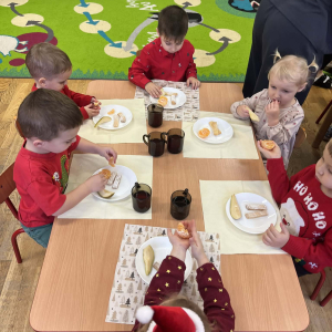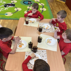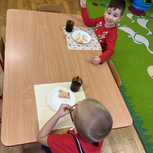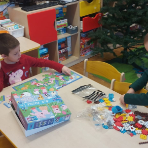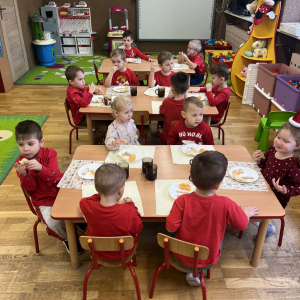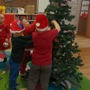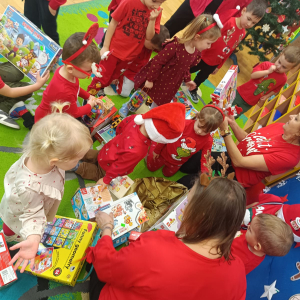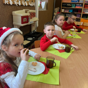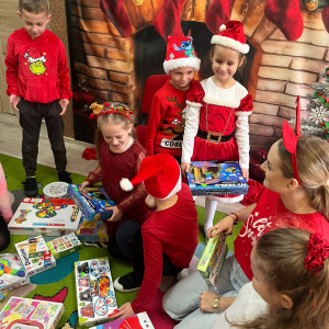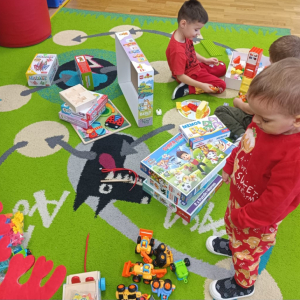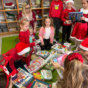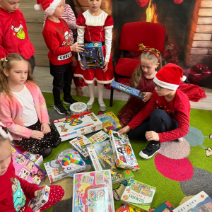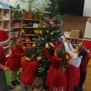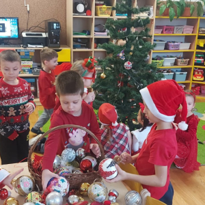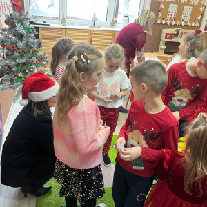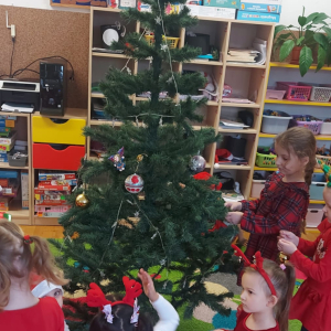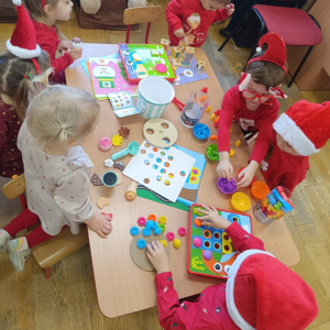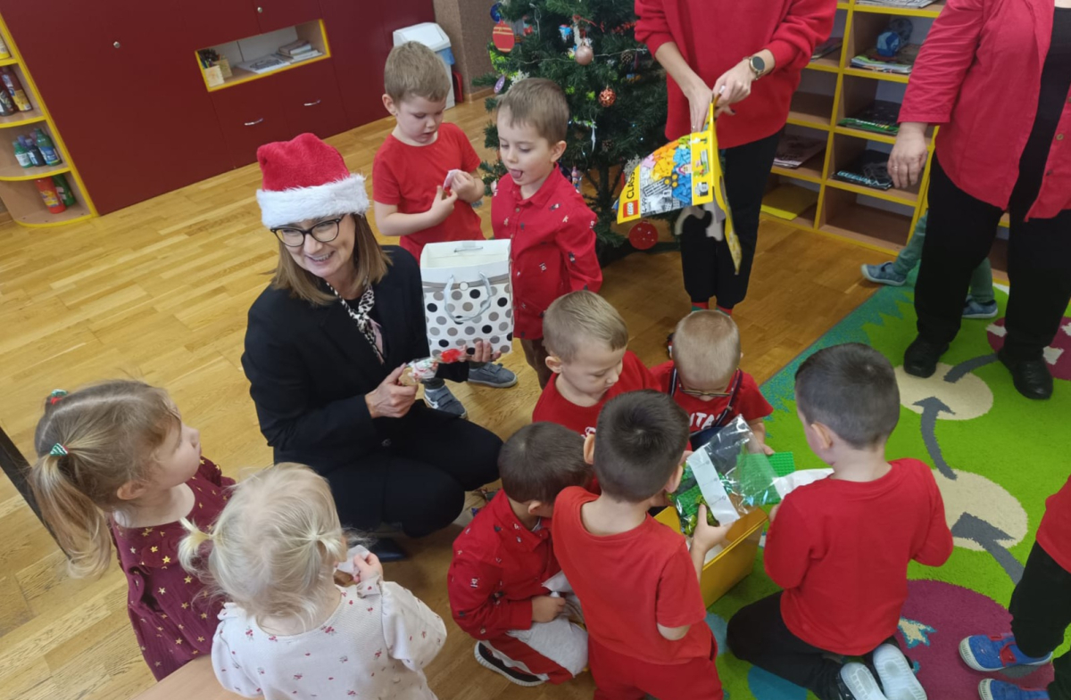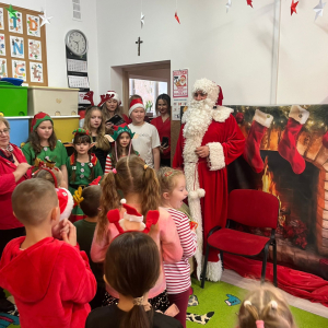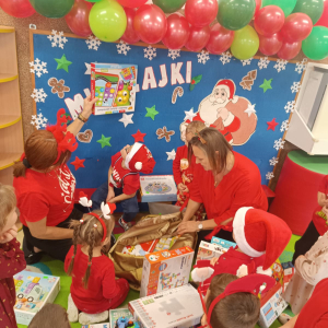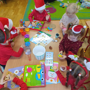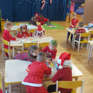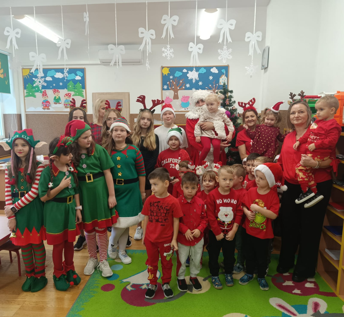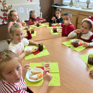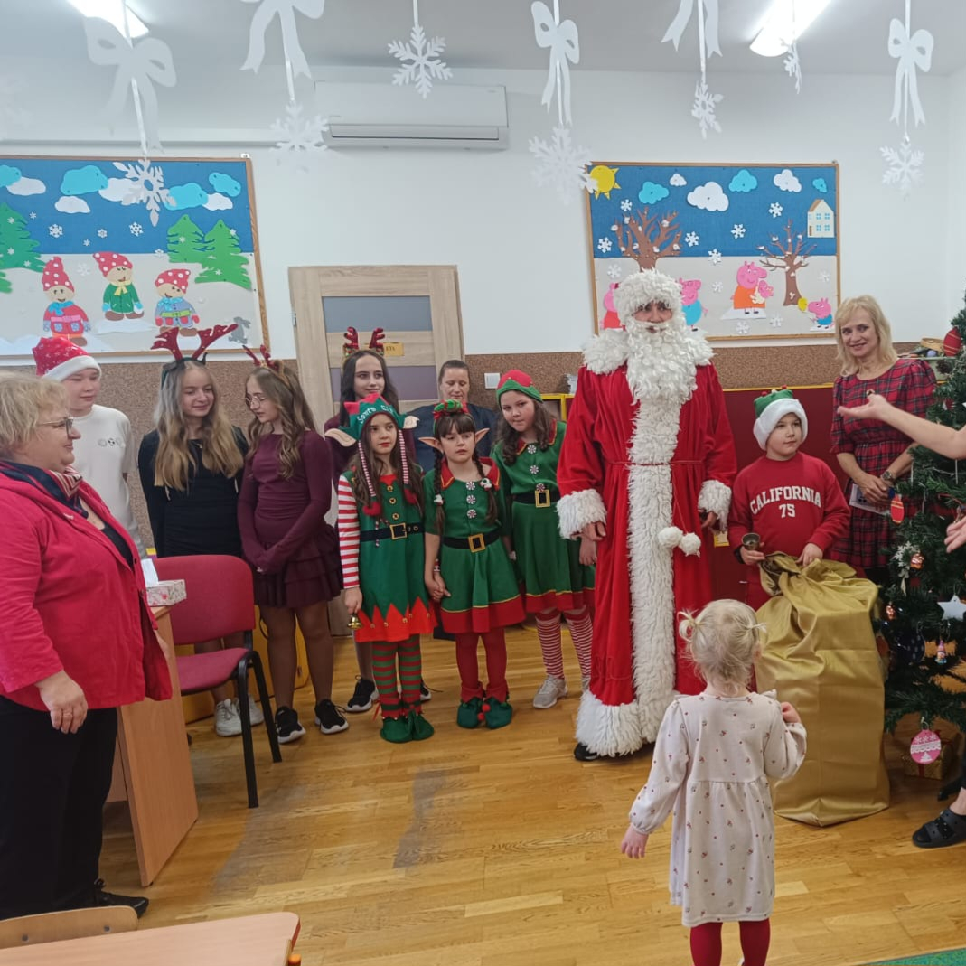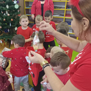 5 grudnia w naszym przedszkolu pojawił się długo wyczekiwany gość – Święty Mikołaj! Przybył z wielkim workiem pełnym niespodzianek, a dzieci powitały go radosnymi piosenkami i wierszykami. Odbył się również słodki poczęstunek, który umilił wszystkim to wyjątkowe, magiczne przedpołudnie. Jak co roku, każde z przedszkolnych oddziałów otrzymało nowe zabawki do sal, zakupione dzięki środkom pochodzącym z komitetu rodzicielskiego oraz z budżetu przedszkola. Serdecznie dziękujemy Rodzicom za sponsorat, Pani Sekretarz Gminy Horodło Renacie Czekaj – za słodkości oraz klocki LEGO dla każdej z grup, a Panu Mateuszowi Jaroniowi – za wsparcie finansowe. Dziękujemy również Świętemu Mikołajowi za odwiedziny i stworzenie wspaniałej, radosnej atmosfery. Mamy nadzieję, że spotkamy się ponownie za rok!