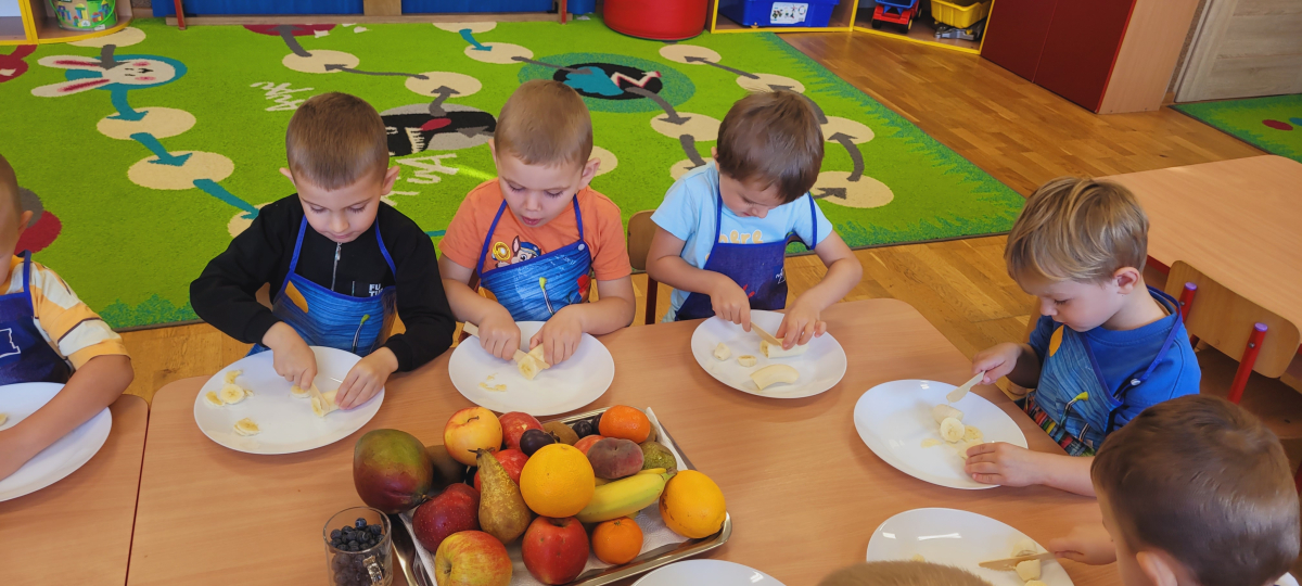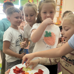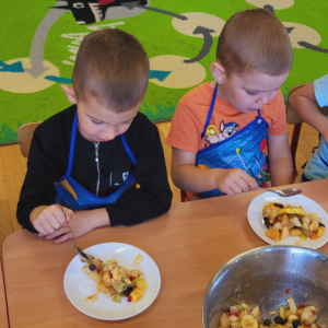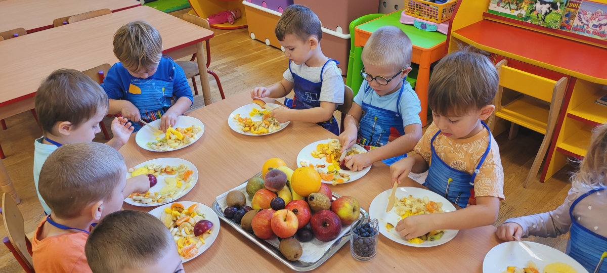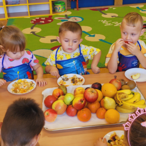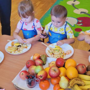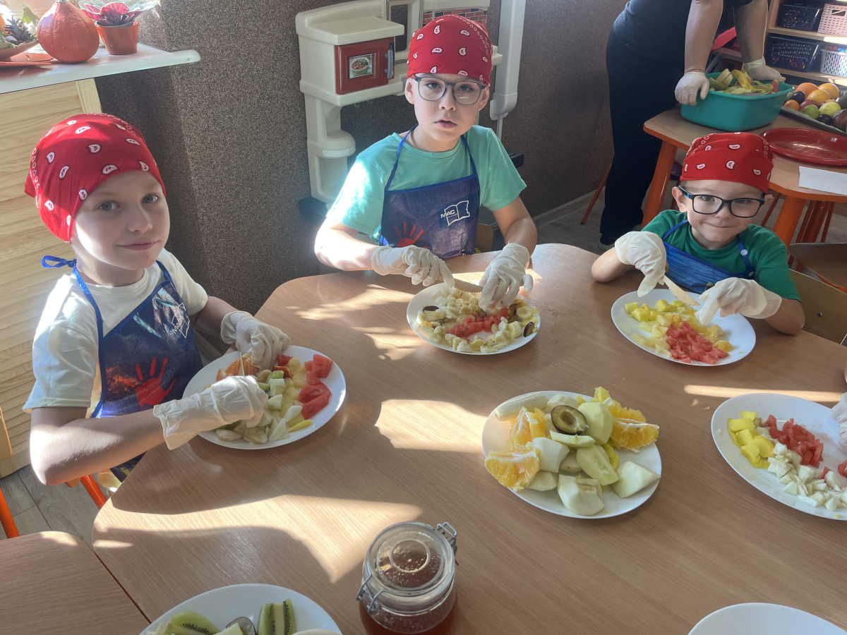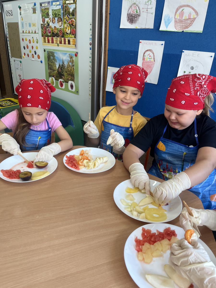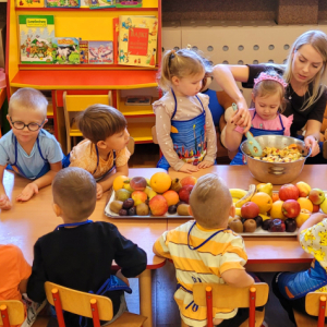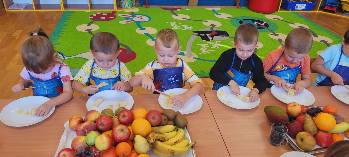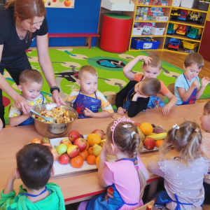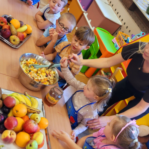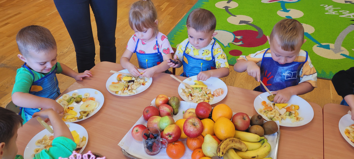 W tym tygodniu przedszkolaki odkrywały różne smaki! Poznawały owoce i warzywa, dowiedziały się, dlaczego są one tak ważne dla naszego zdrowia, a także miały okazję spróbować ich na różne sposoby. Najwięcej radości sprawiło wspólne przygotowanie pysznej sałatki owocowej pełnej kolorów i witamin!