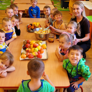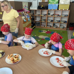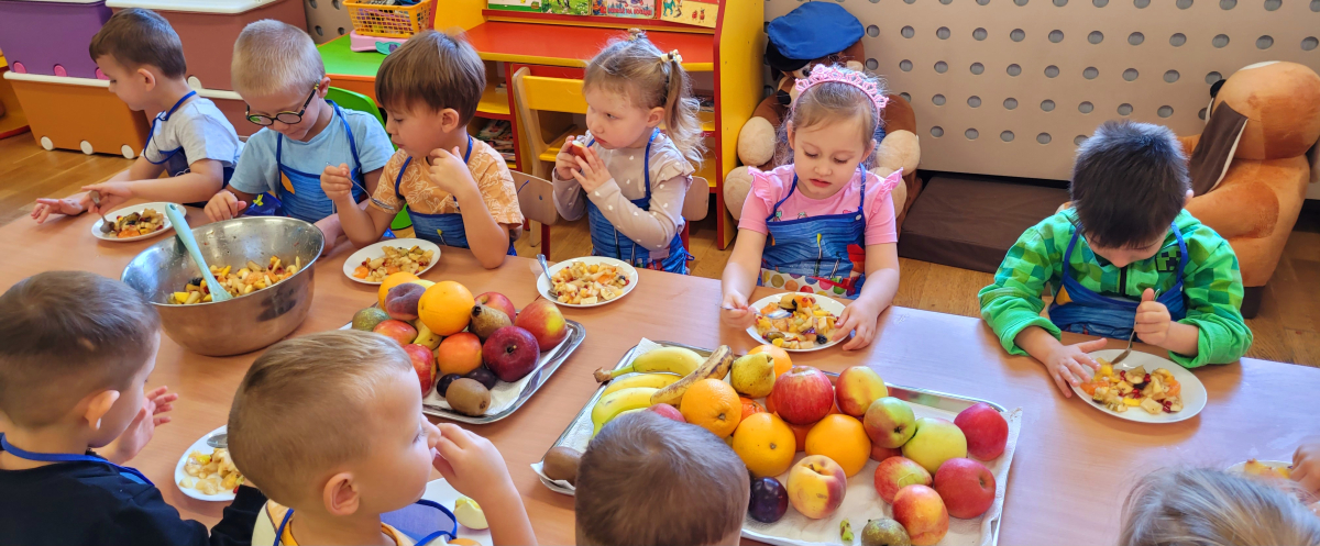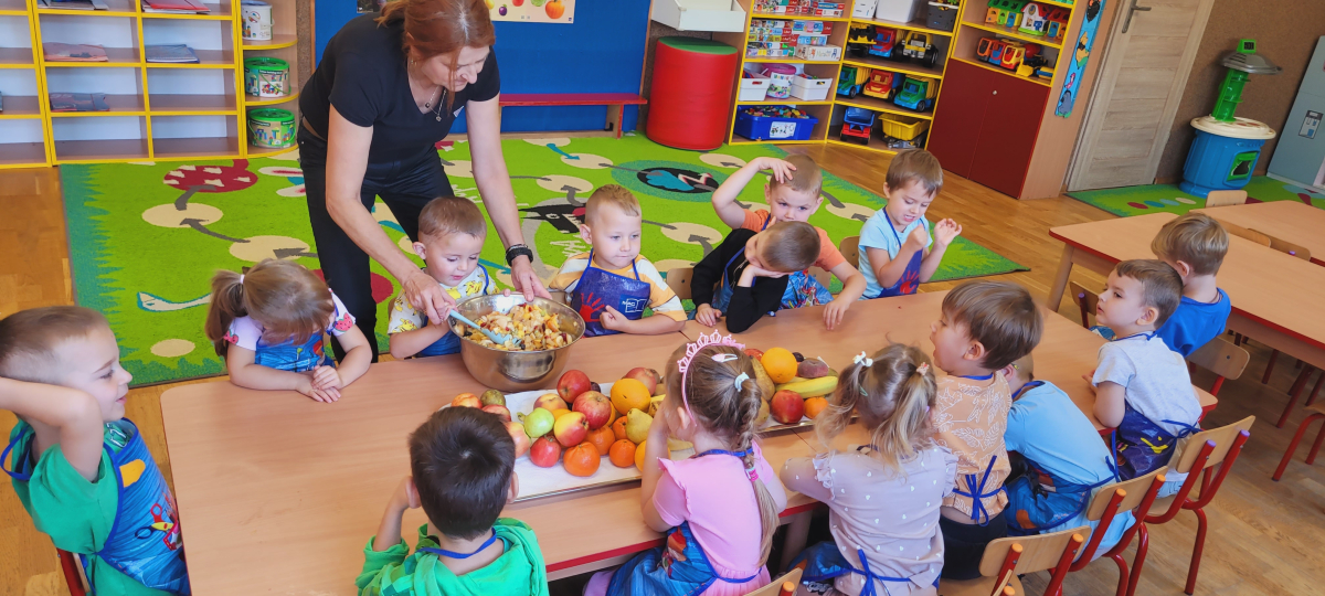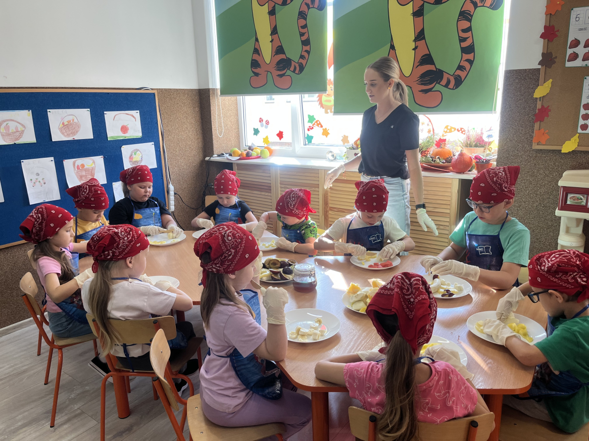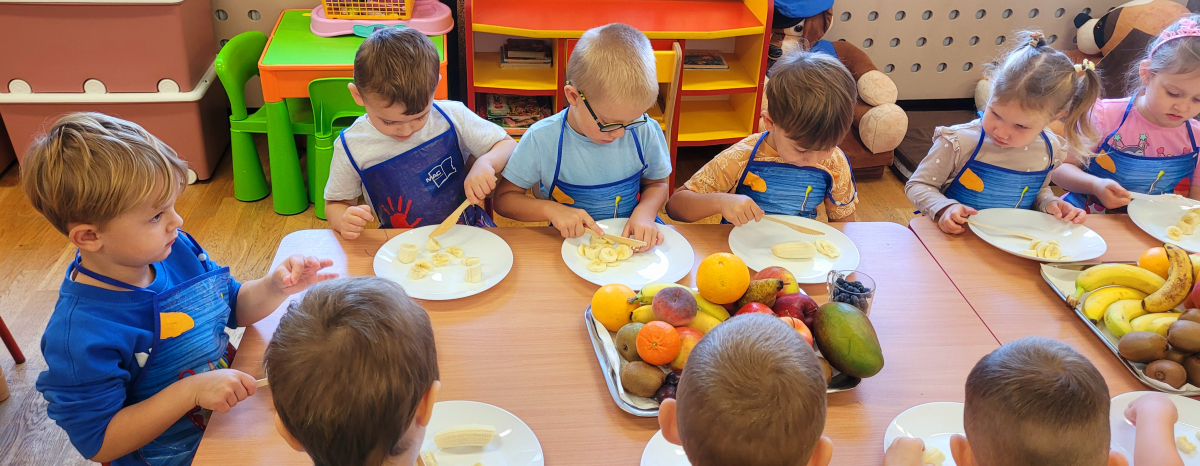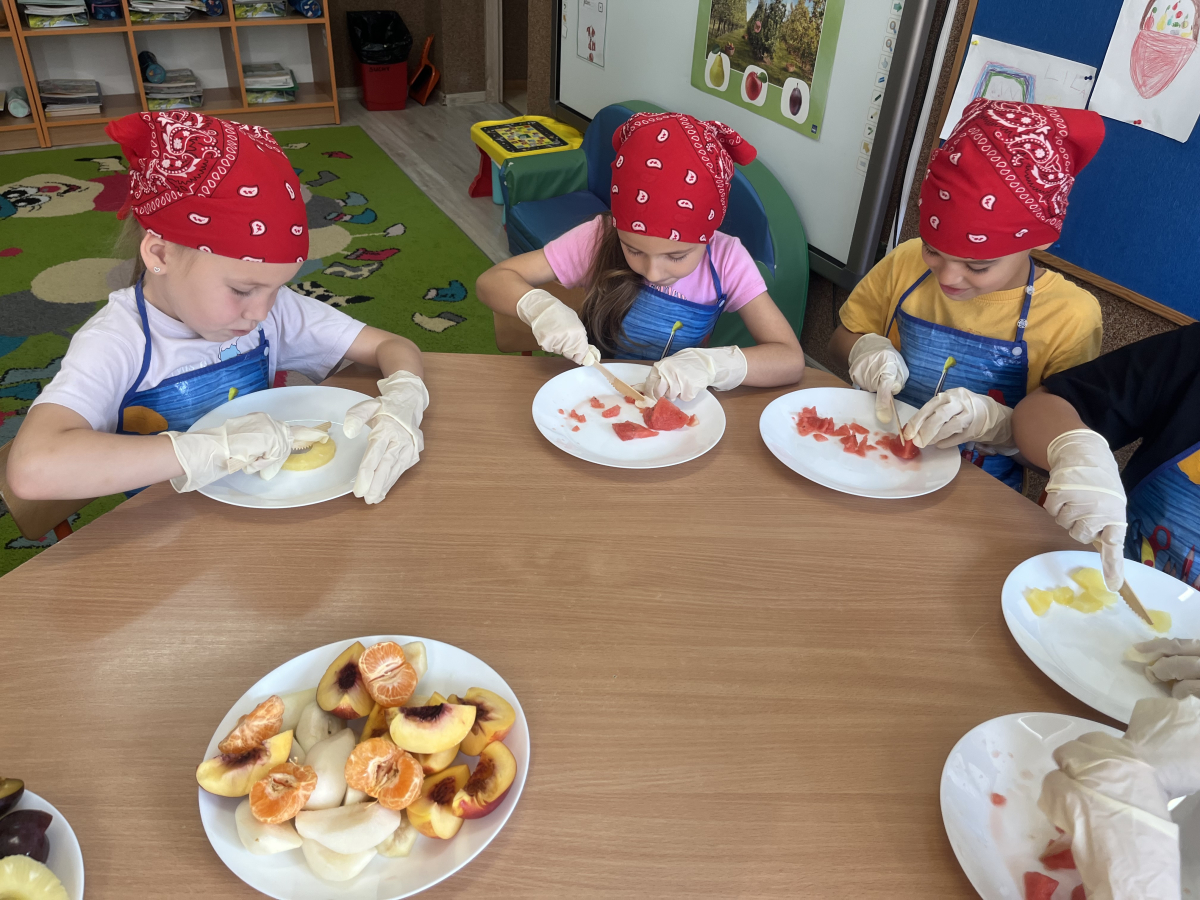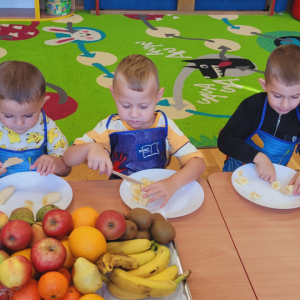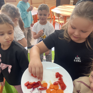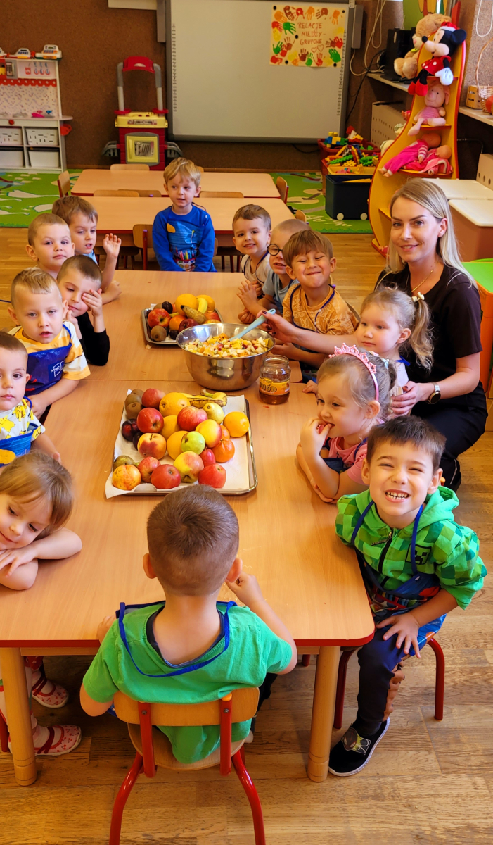 W tym tygodniu przedszkolaki odkrywały różne smaki! Poznawały owoce i warzywa, dowiedziały się, dlaczego są one tak ważne dla naszego zdrowia, a także miały okazję spróbować ich na różne sposoby. Najwięcej radości sprawiło wspólne przygotowanie pysznej sałatki owocowej pełnej kolorów i witamin!