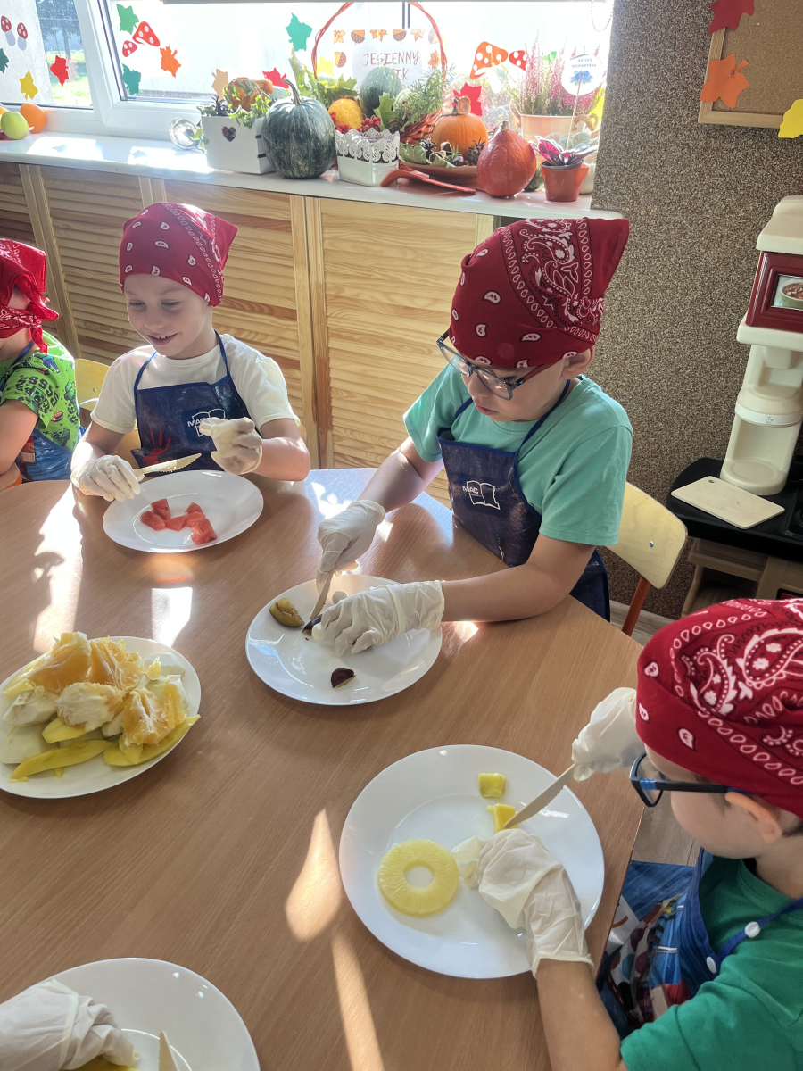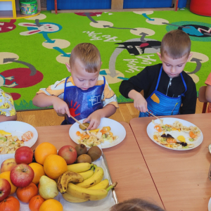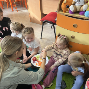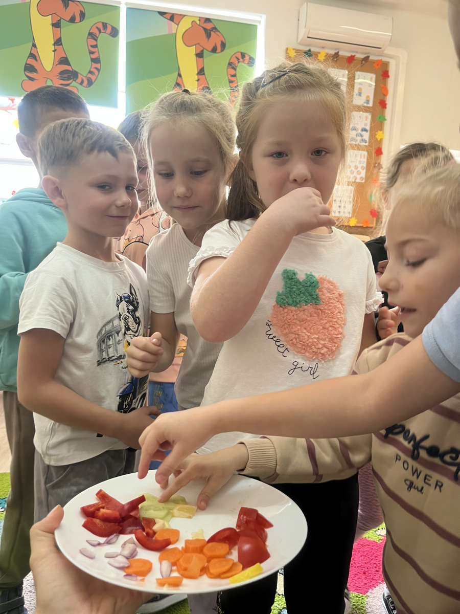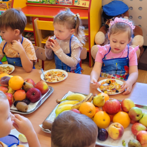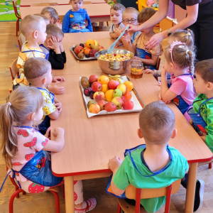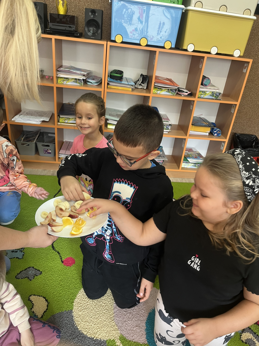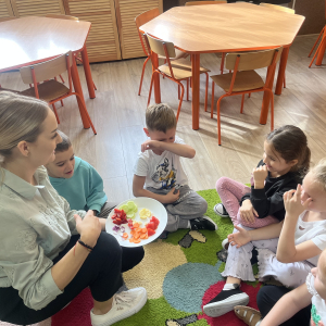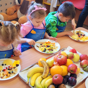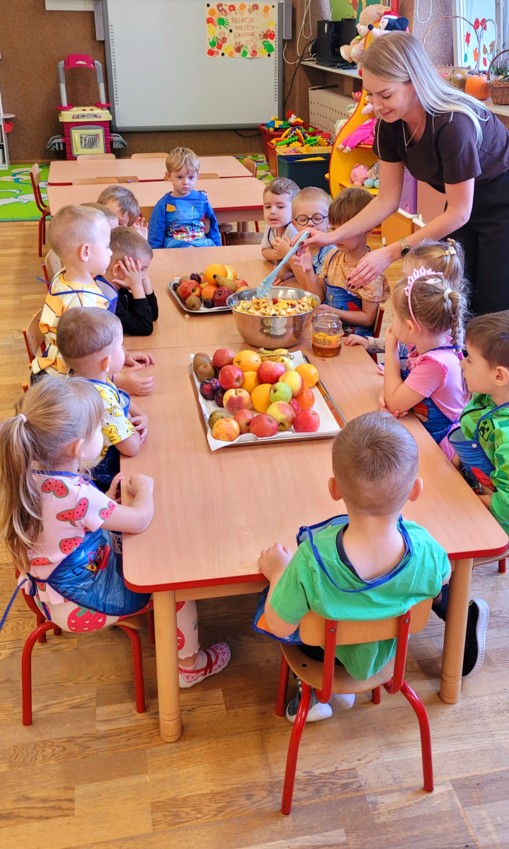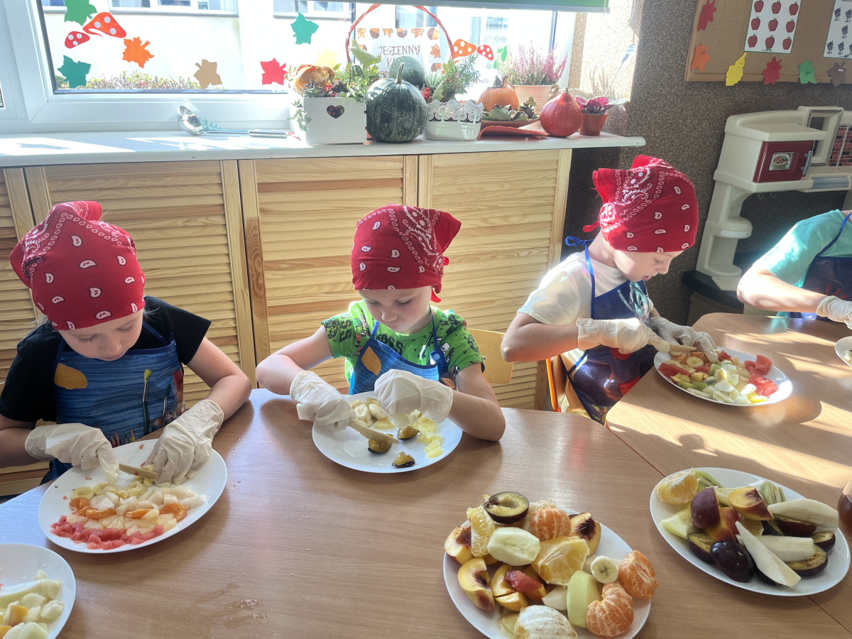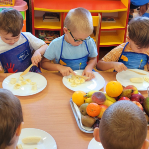W tym tygodniu przedszkolaki odkrywały różne smaki! Poznawały owoce i warzywa, dowiedziały się, dlaczego są one tak ważne dla naszego zdrowia, a także miały okazję spróbować ich na różne sposoby. Najwięcej radości sprawiło wspólne przygotowanie pysznej sałatki owocowej pełnej kolorów i witamin!