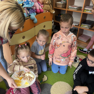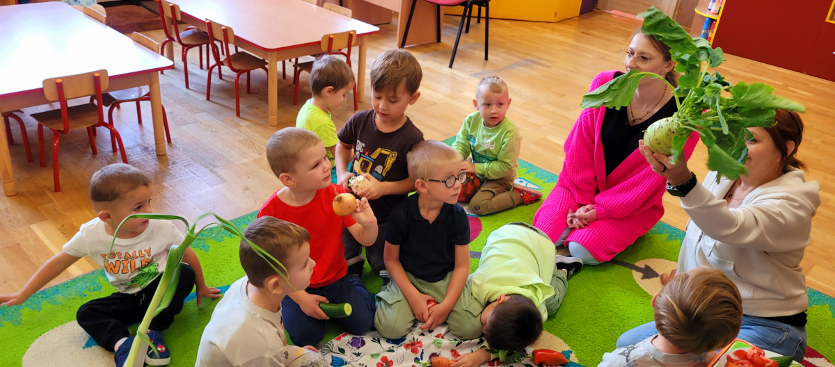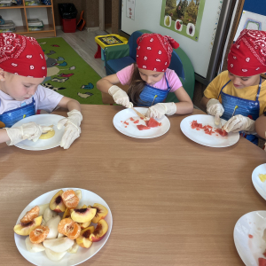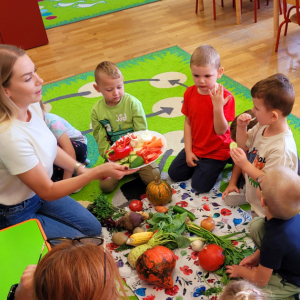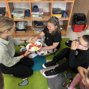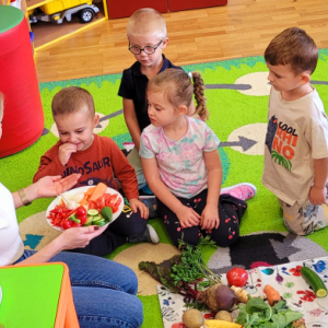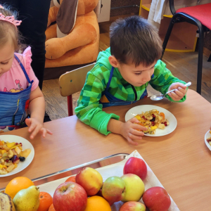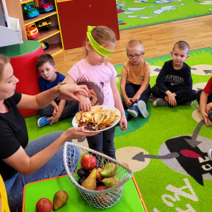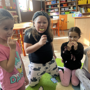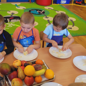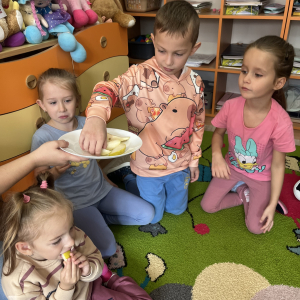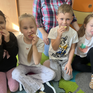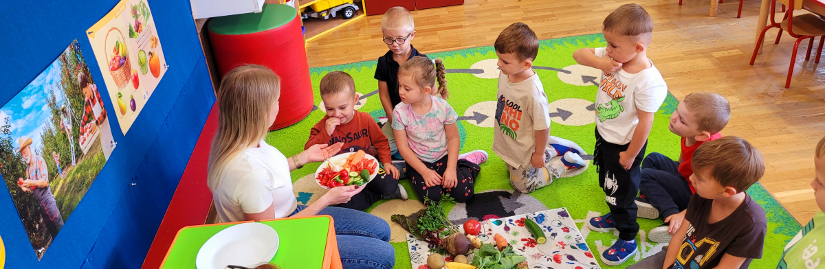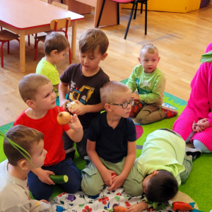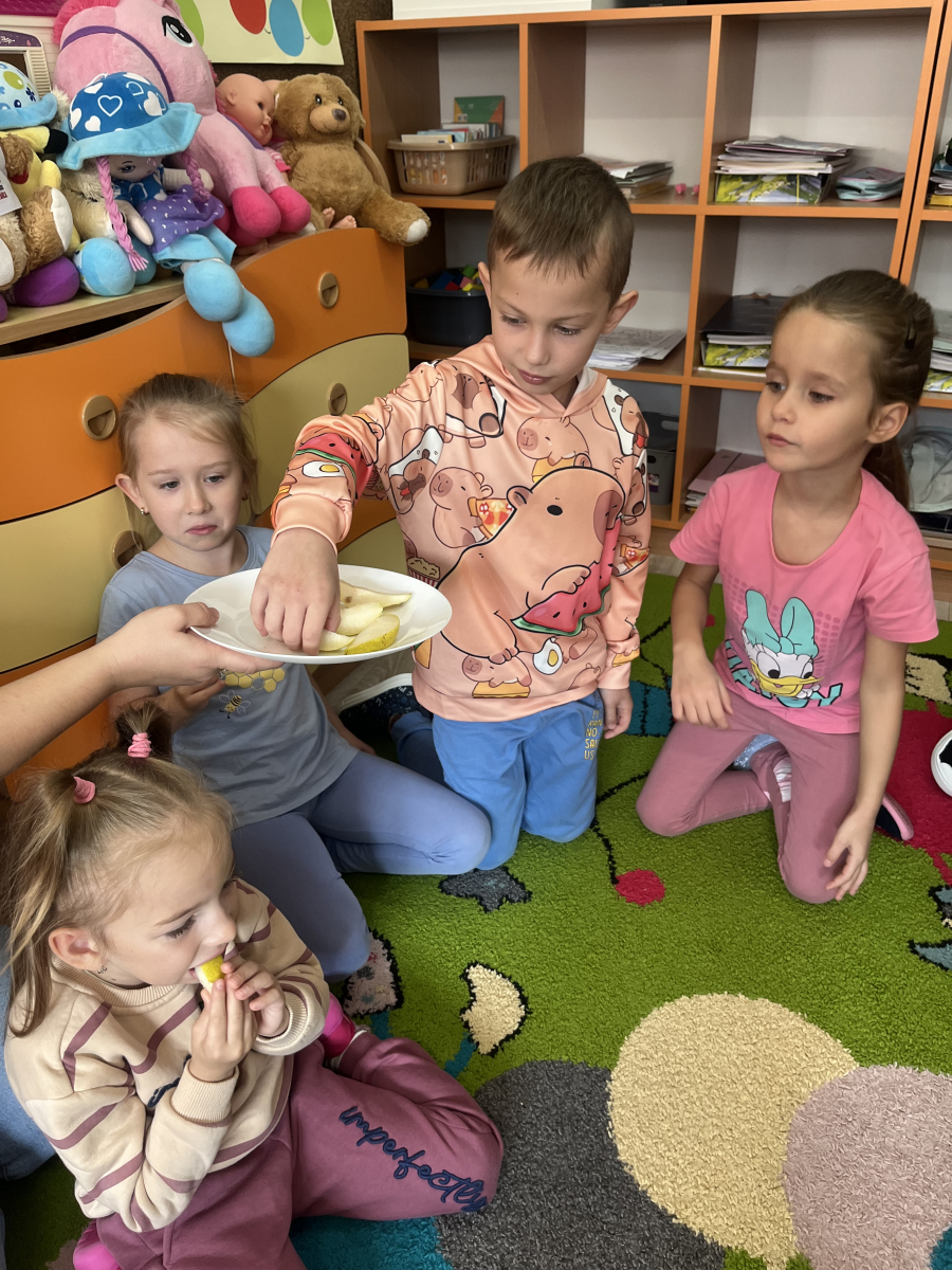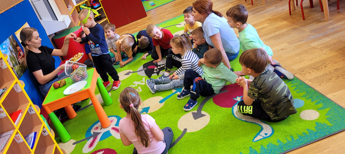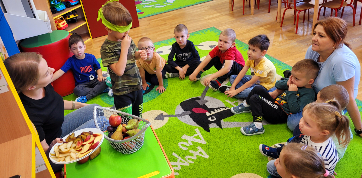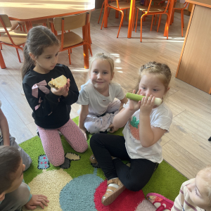 W tym tygodniu przedszkolaki odkrywały różne smaki! Poznawały owoce i warzywa, dowiedziały się, dlaczego są one tak ważne dla naszego zdrowia, a także miały okazję spróbować ich na różne sposoby. Najwięcej radości sprawiło wspólne przygotowanie pysznej sałatki owocowej pełnej kolorów i witamin!